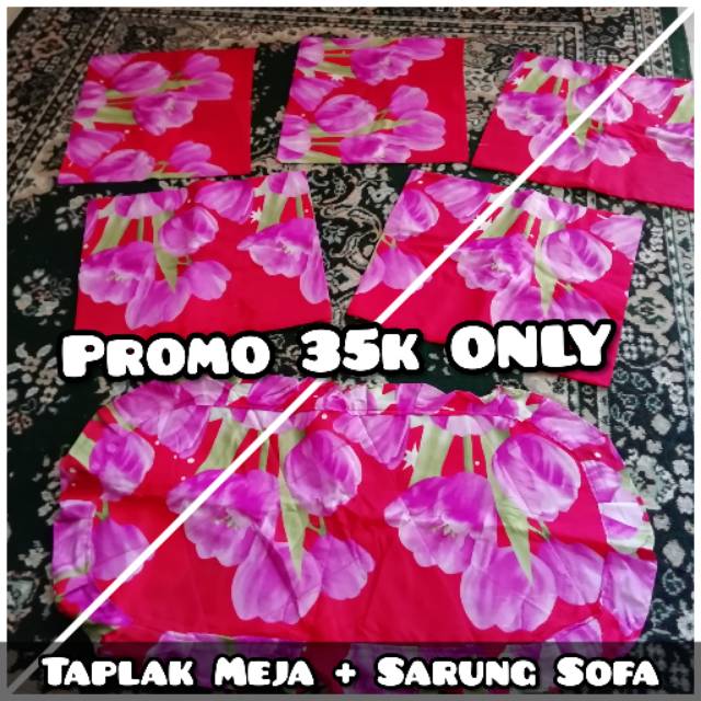 Sarung Sofa Plus Taplak Meja Motif Bunga