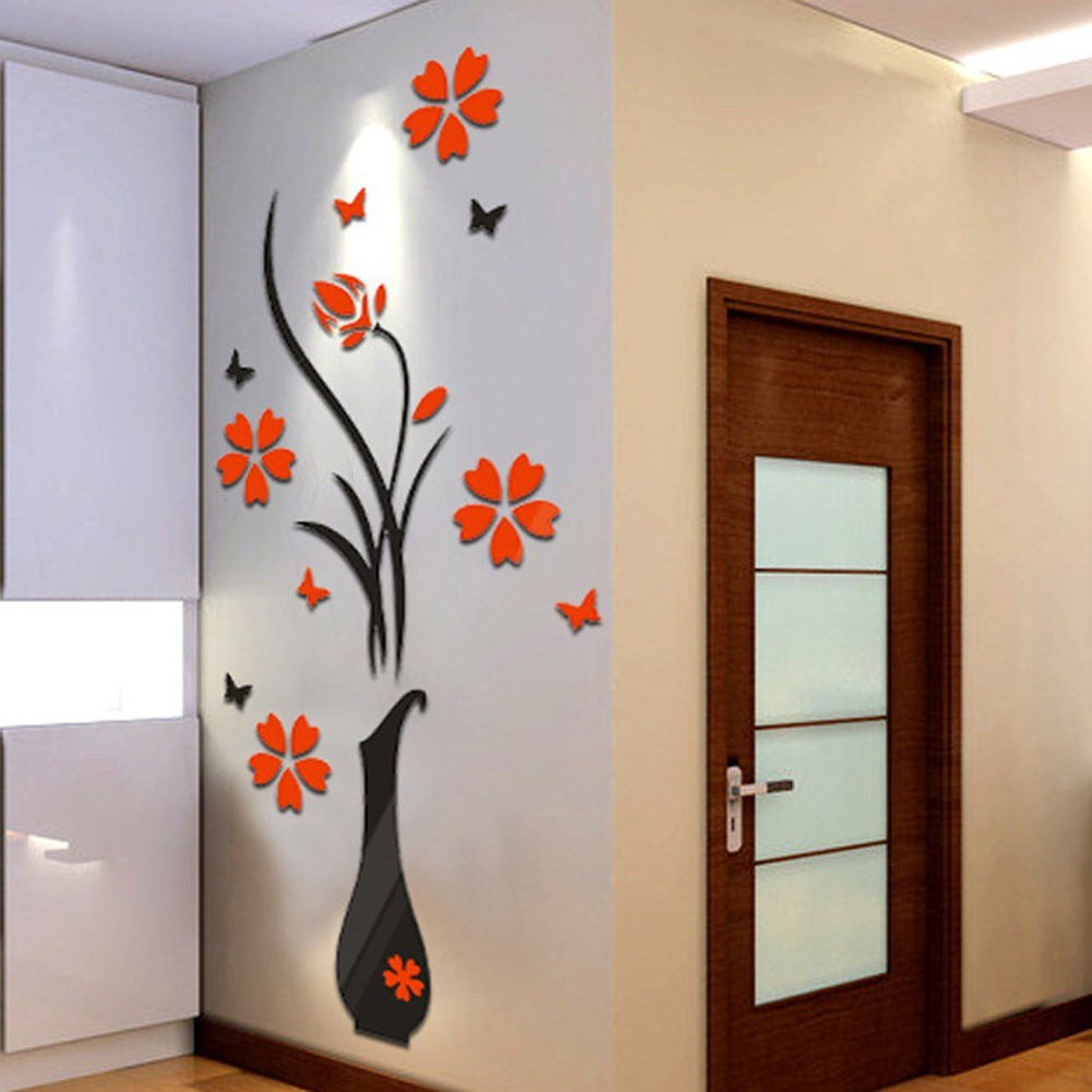 Stiker Dinding Dengan Bahan Kristal Akrilik Dan Gambar Vas Bunga 3d Untuk Dekorasi Rumah
