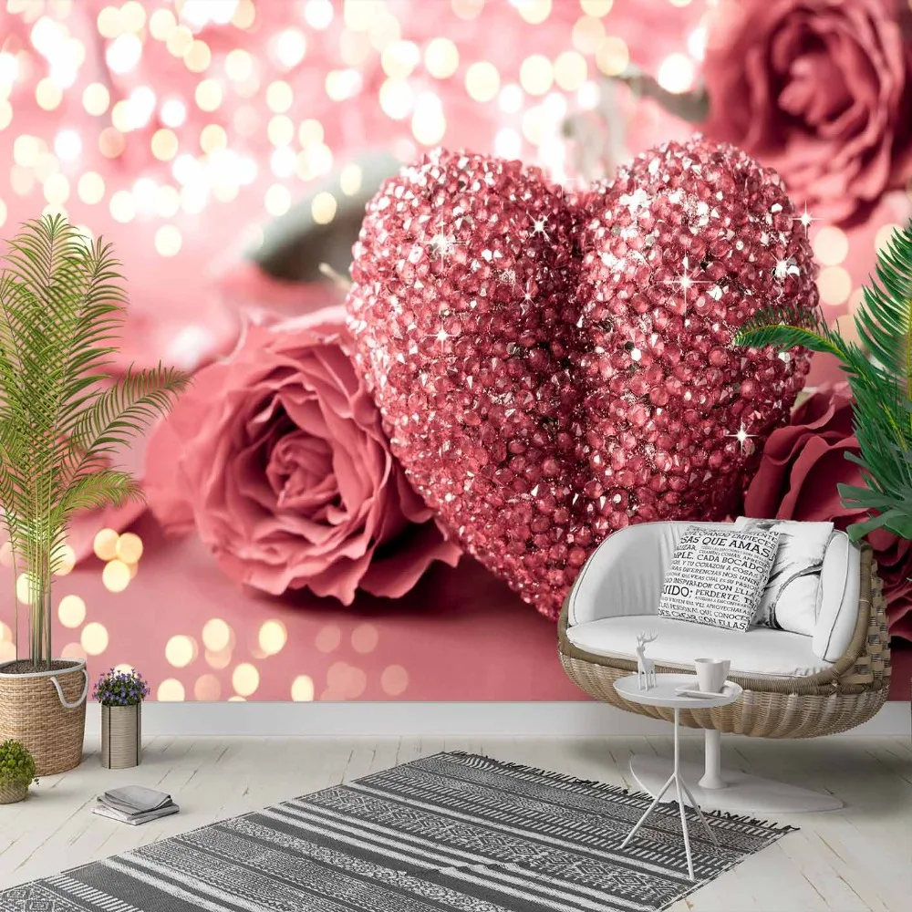 Us 14 99 Else Pink White Roses Diamond Hearts Love 3d Photo Cleanable Fabric Mural Home Decor Living Room Bedroom Background Wallpaper In Wallpapers