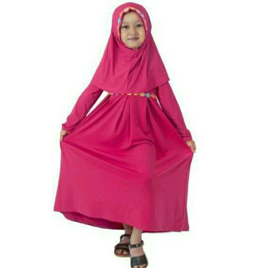 Promo Baju Muslim Gamis Anak Perempuan Rempel Bunga Melati Warna Magenta