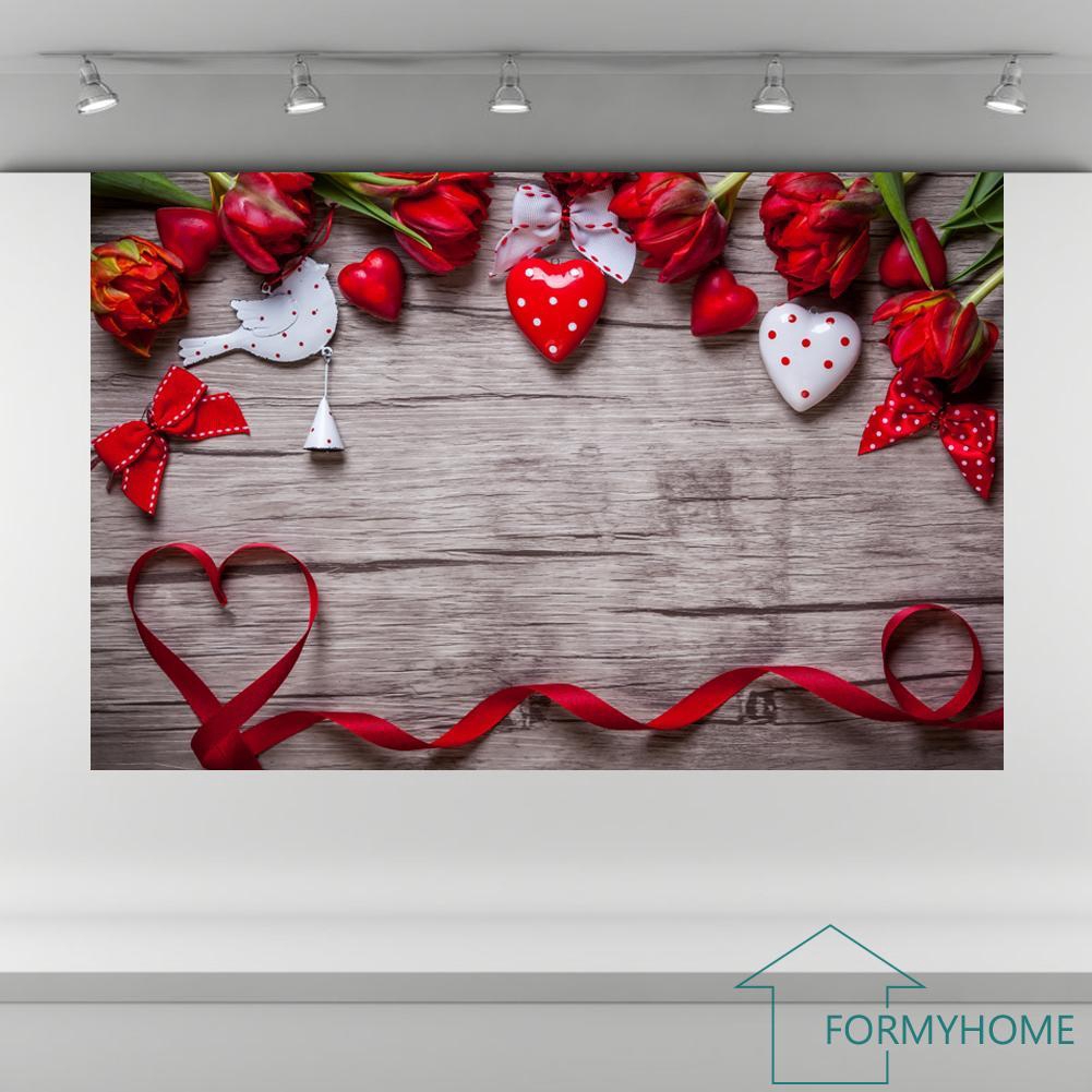 Layar Backdrop Background Prop Fotografi Pernikahan Gambar Hati Dan Bunga Mawar