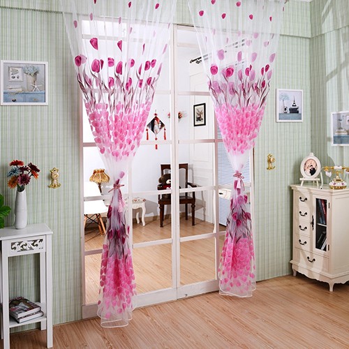 Tirai Jendela Pintu Dengan Bahan Tulle Voile Dan Gambar Motif Bunga Tulip Bergaya Romantis