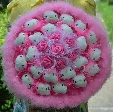 Kreatif Baru Indah Hello Kitty Kartun Buket Bulu Renda