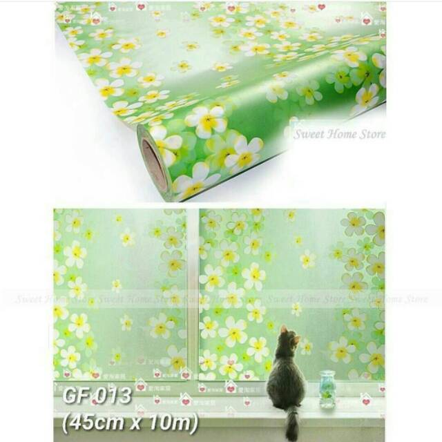 Wallpaper Kaca Sunblast 45cm X 7m Motif Bunga Melati Putih Kuning Hijau