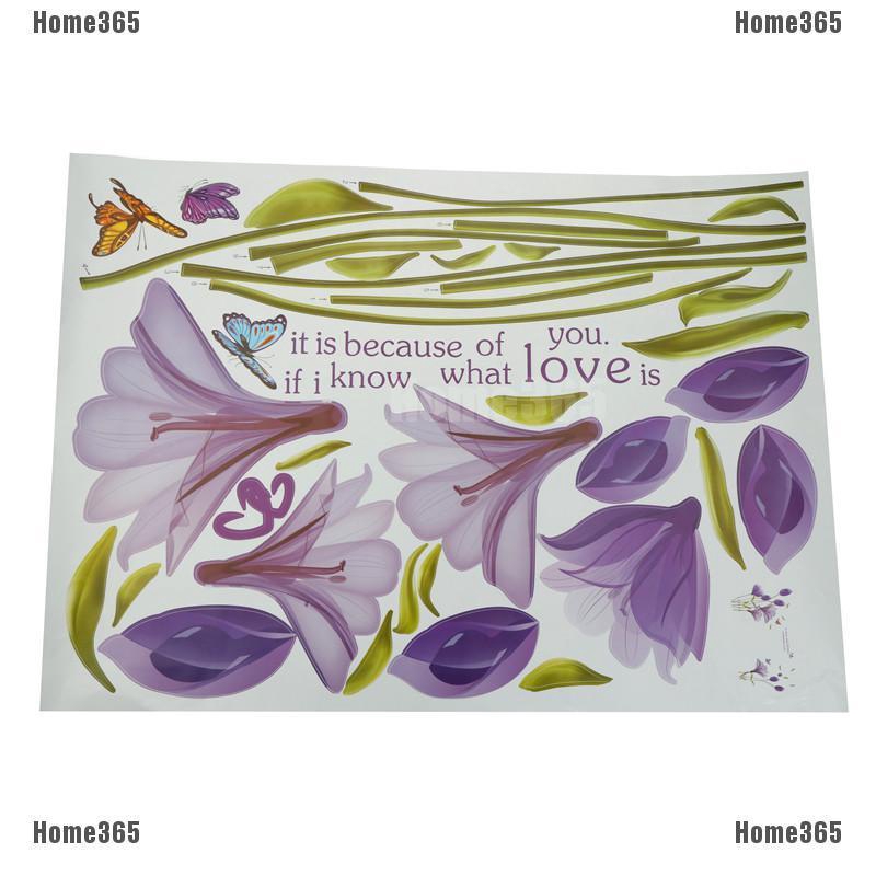 Stiker Dinding Desain Bunga Lily Warna Ungu Dapat Dicopot