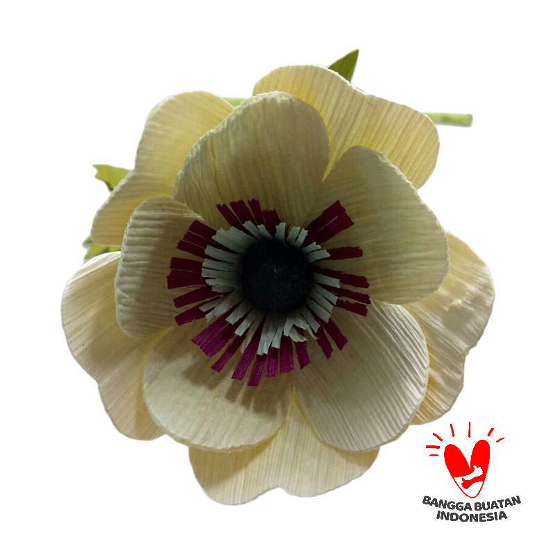 Kembang Kamonesan Bunga Tangkai Anemone Daun Kulit Jagung Dekorasi Ruangan White