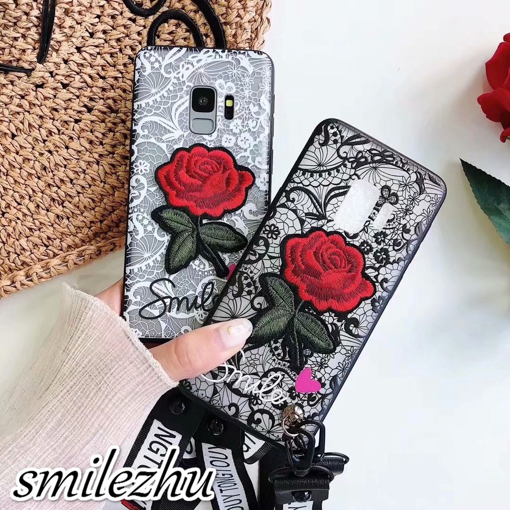 Casing Hard Case Motif Bunga Mawar 3d Tali Lanyard Untuk Xiaomi Mi 5 5s 5x Note 3 8 8se