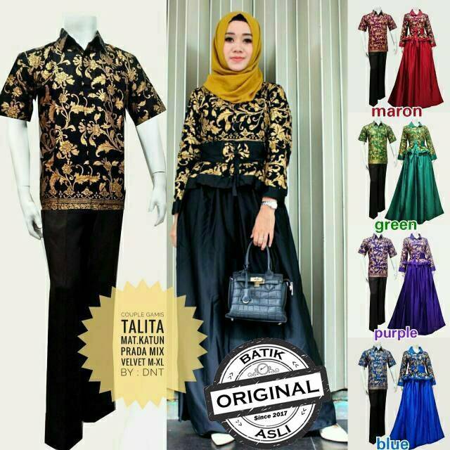 Fashion Busana Muslim Kekinian Batik Sarimbit Gamis Talita Motif Bunga Savana Seragaman Kondangan