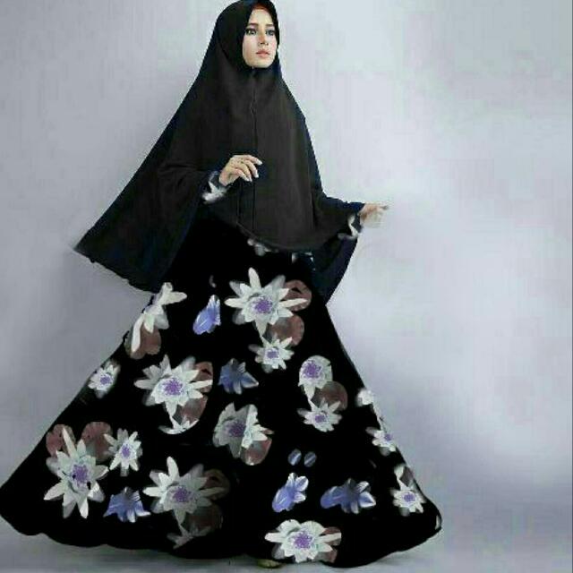 Gamis Syar I Hitam Motif Bunga Olshop Fashion Olshop