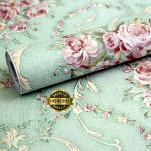 Wallpaper Grosir Termurah Sticker Dinding Bunga Mawar Hijau Tosca Dekorasi Ruang Tv Panjang10mx45cm