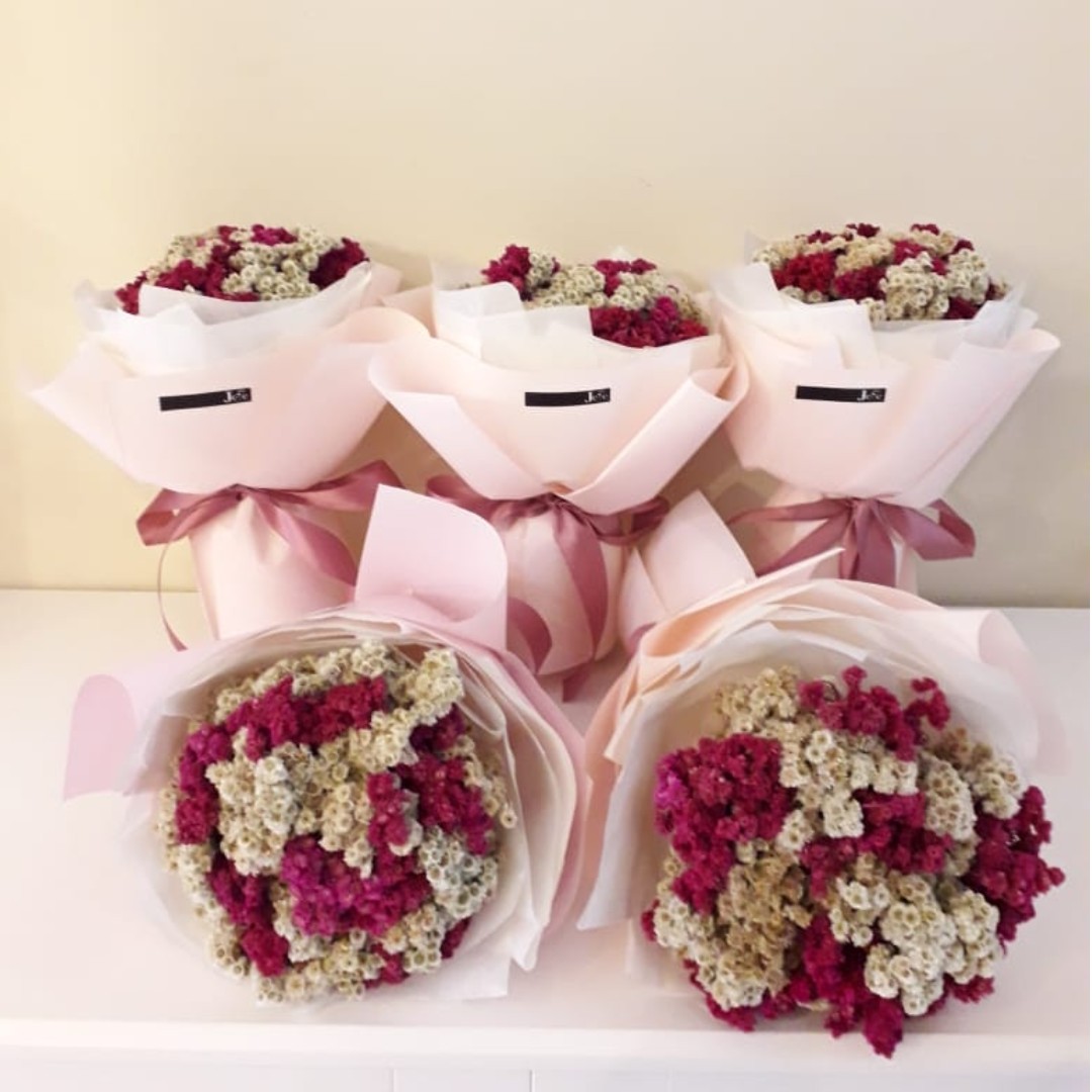 Valentine Pink Bouquet Rangkaian Bunga Edelweis Merah Muda