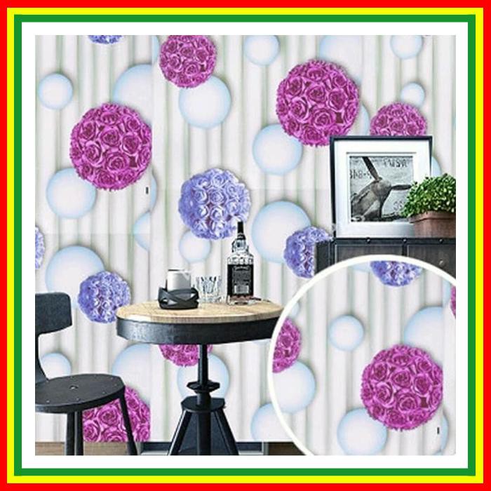 Wallpaper Dinding Wallpaper Sticker Walpaper Dinding Motif Bunga Mawar Ungu Biru 10meter