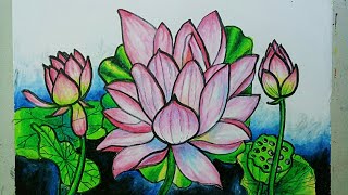 Cara Menggambar Bunga Teratai Dengan Krayon Pen Di Kertas