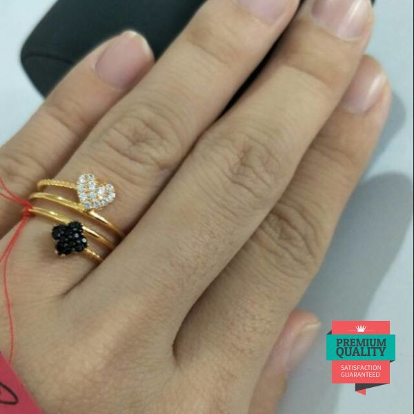 Murah Cincin Hati Bunga Hitam Putih Emas Asli Kadar 700 Keren