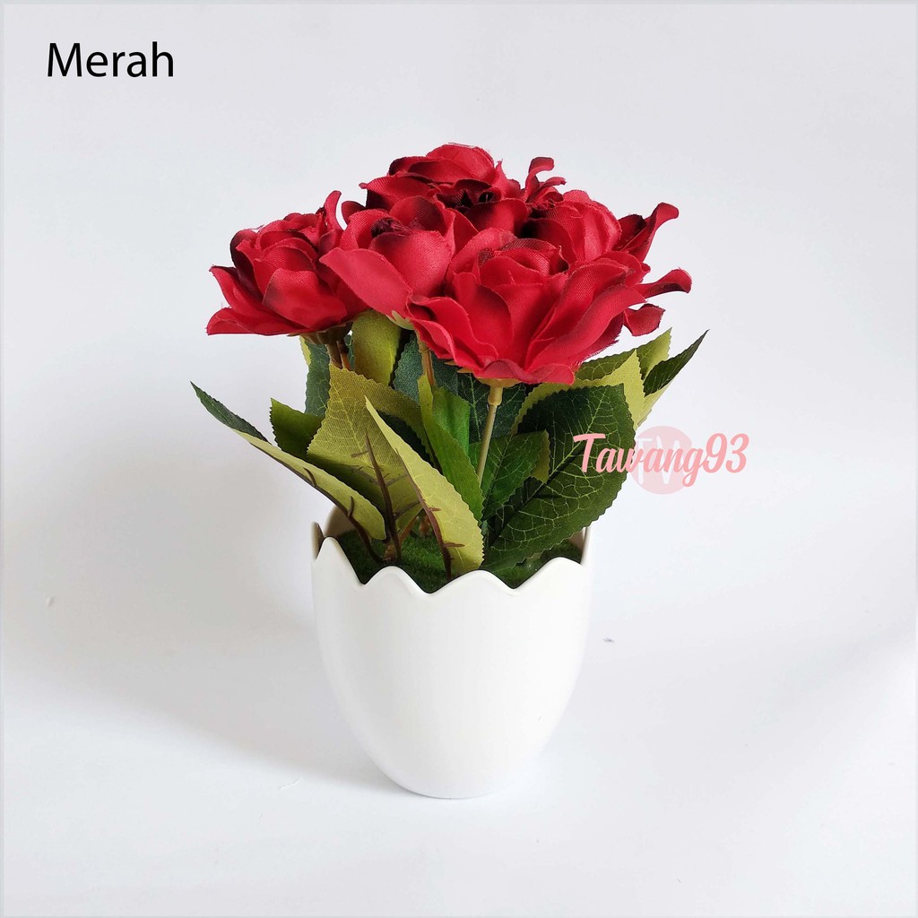 Vas Bunga Mawar Plastik Hiasan Rumah Bunga Souvenir Cantik Vb04