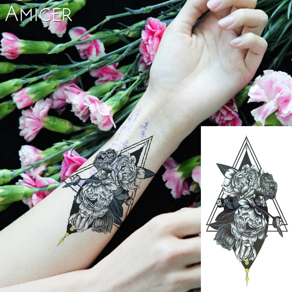 Us 0 59 40 Off 1pc Abu Abu Mawar Hitam Putih Bunga Besar Henna Sementara Tato Hitam Mehndi Gaya Tahan Air Tato Stiker In Sementara Tato From