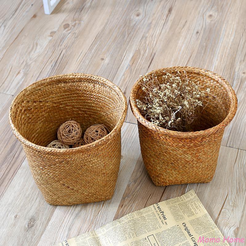 Box Kreatif Jerami Pot Bunga Set Desktop Putaran Limbah Kertas Keranjang Ruan