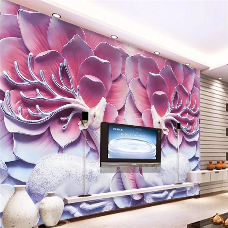 Us 8 4 44 Off Beibehang Dinding Lukisan Art Latar Belakang Fotografi Rusa Merah Muda Bunga Bantuan Hotel Badroom Wallpaper Mural Yang Modern Untuk