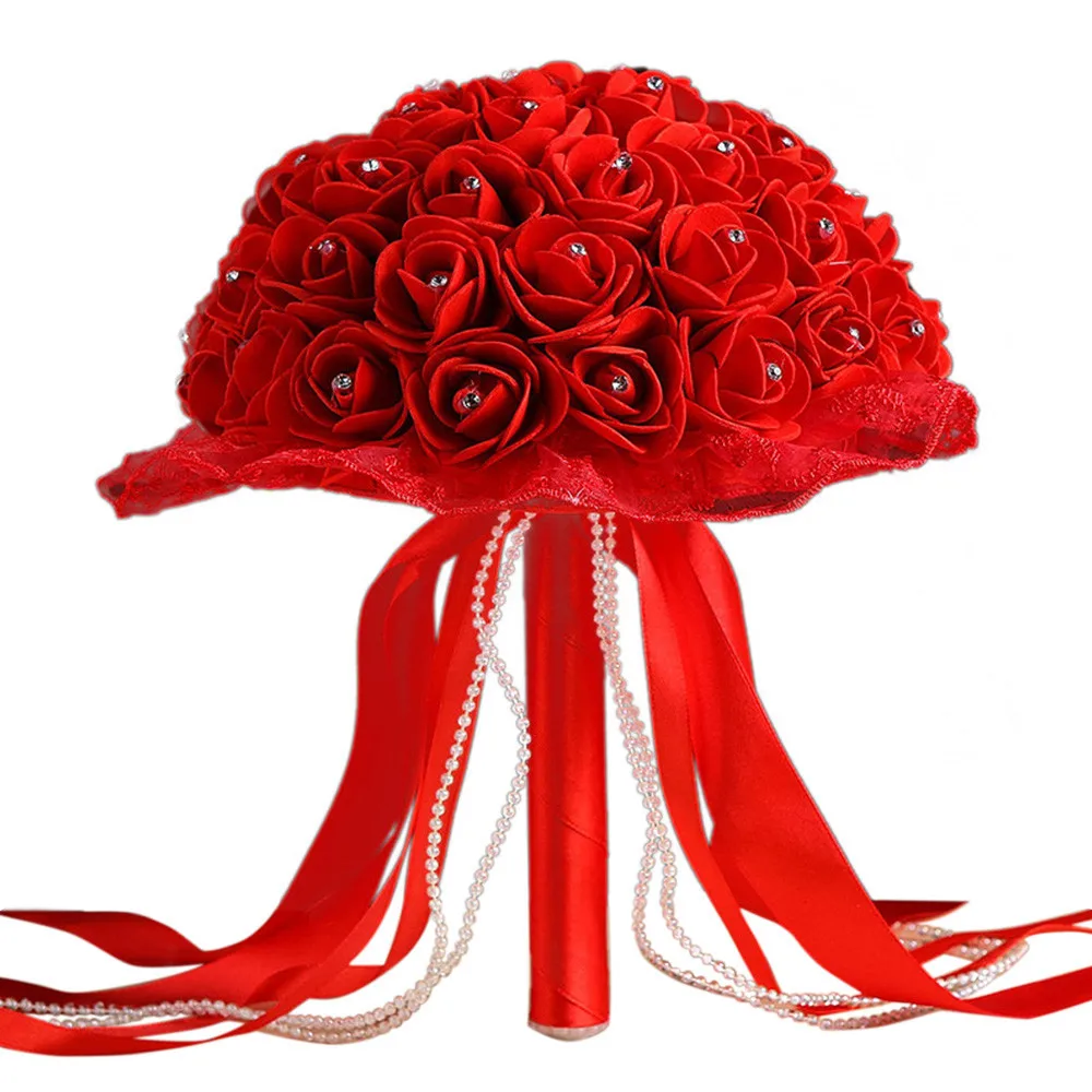 Us 4 83 39 Off Buatan Busa Bunga Pernikahan Bridal Bouquet Mawar Kristal Mutiara Bride Bridesmaid Pernikahan Bouquet Tangan Stick Bunga 2017 In