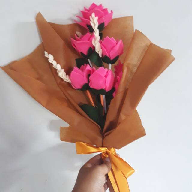 Buket Bunga Mawar Mekar Flanel