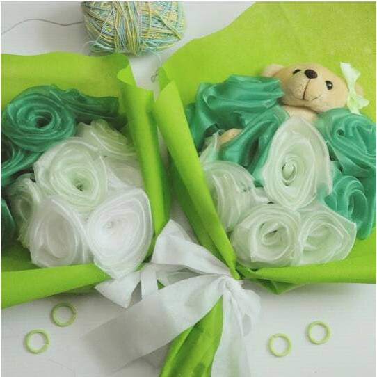 Buket Bunga Boneka Led Gradasi Hijau Putih