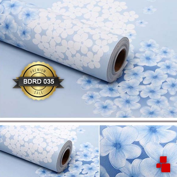 Bdrd 035 10m X 45cm Wallpaper Sticker Wallpaper Dinding Bunga Sakura Biru Putih Cantik Soft