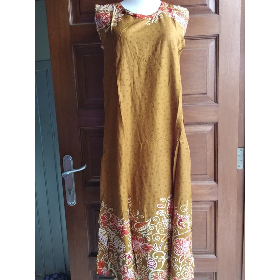 Daster Payung Tanpa Lengan Warna Coklat Motif Bunga Batik Pekalongan