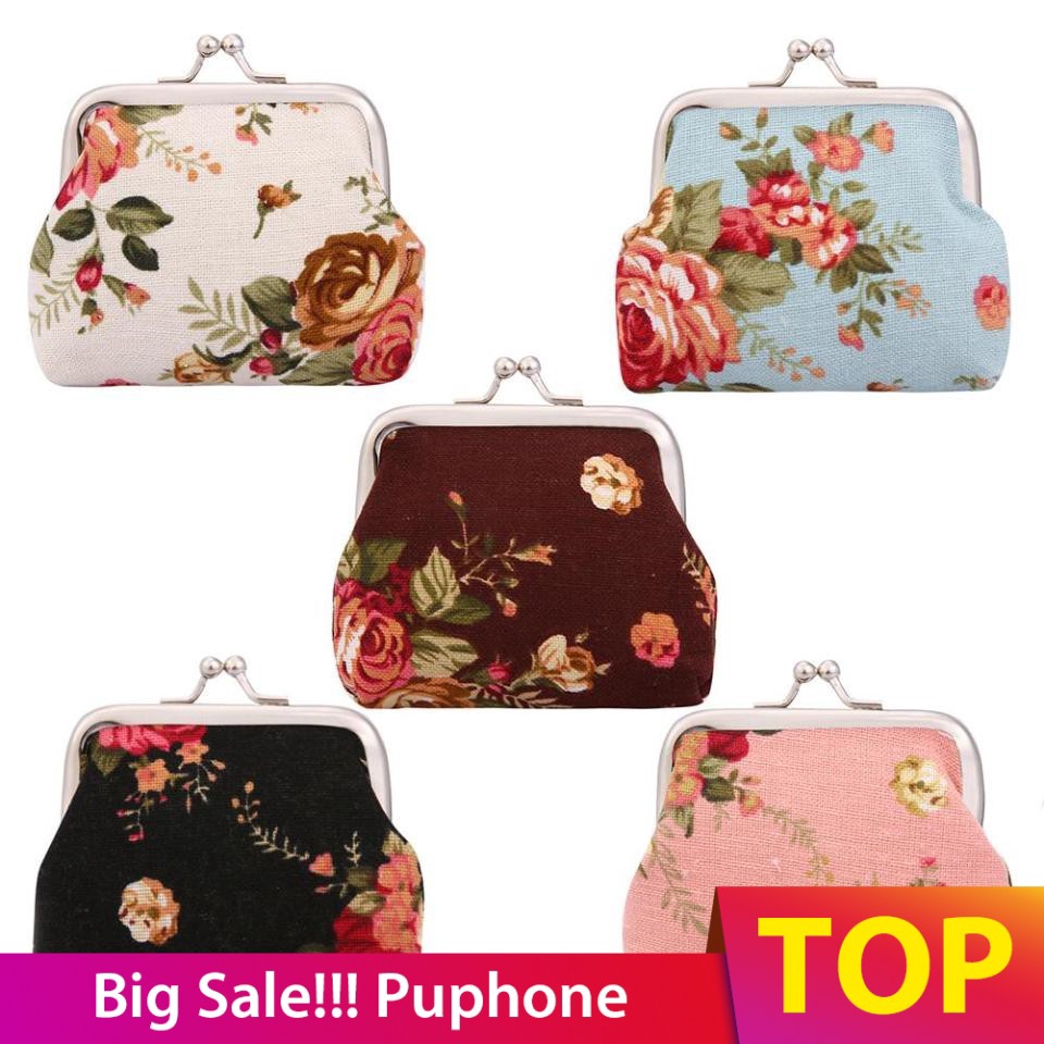 Dompet Koin Bahan Kanvas Motif Print Bunga Vintage Untuk Wanita