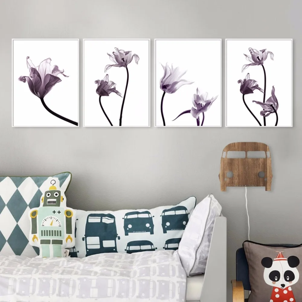 Minimalis Hitam Putih Tanaman Bunga Tulip Foto Art Cetakan Poster Dinding Gambar Kanvas Lukisan Tanpa Bingkai Rumah Deco