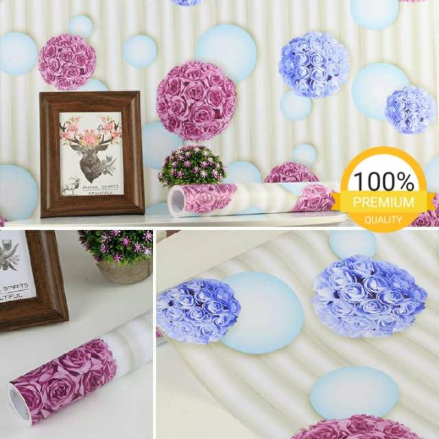 Wallpaper Dinding Murah Bunga Polkadot Ungu Pink Terlaris Cantik Indah Termurah Elegan