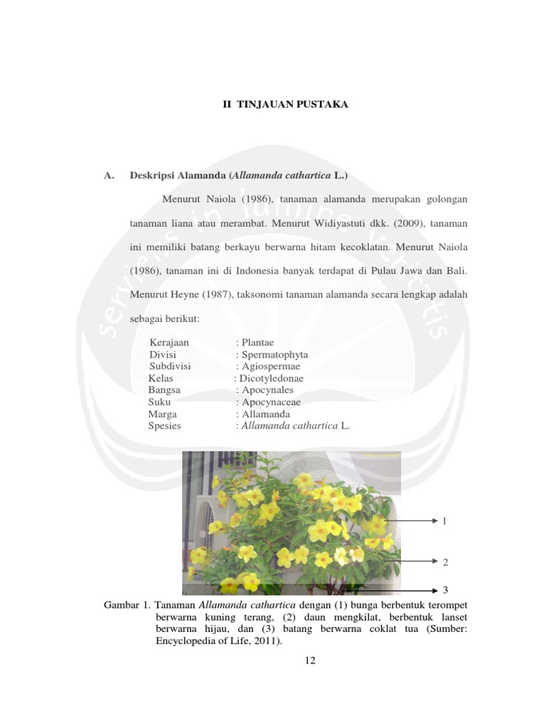 Bab 2 Tinjauan Pustaka 2 1 Sistematika Tanaman Alamanda
