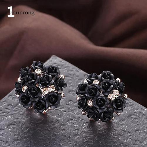 Anting Tusuk Desain Bunga Mawar Mekar Hias Berlian Imitasi Elegan Untuk Wanita