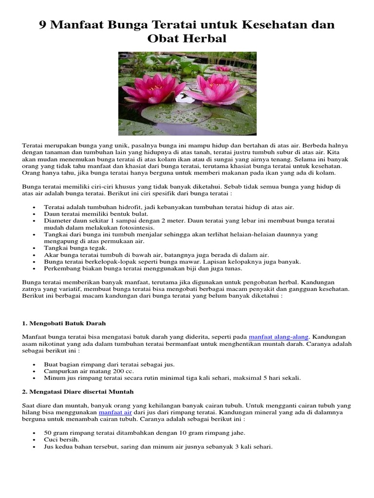 9 Manfaat Bunga Teratai Untuk Kesehatan Dan Obat Herbal Docx