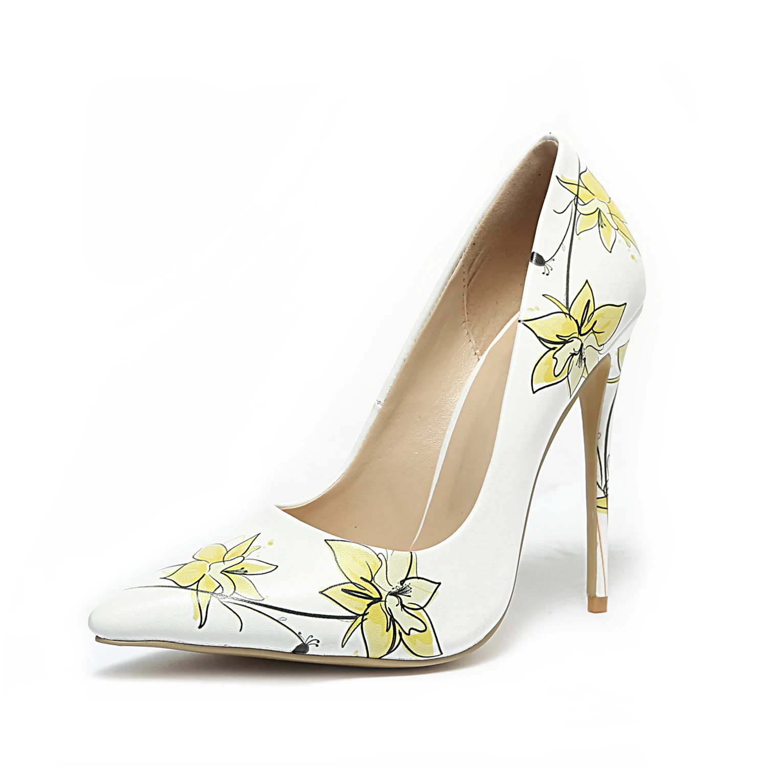 Norberg Fashion Wanita Bahkan Sepatu Hak Tinggi Elegan Tangan Dicetak Tipis Sepatu Pompa Mulut Dangkal Sepatu Wanita Ukuran Besar 45