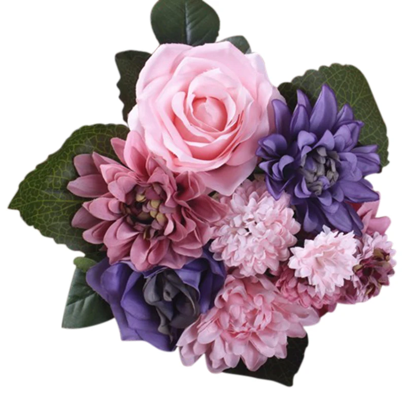 Us 4 47 16 Off Buket Bunga Pernikahan Bunga Mawar Dahlia Buatan Fall Vivid Palsu Daun Pernikahan Bunga Bridal Karangan Bunga Dekorasi Ungu Di Buatan
