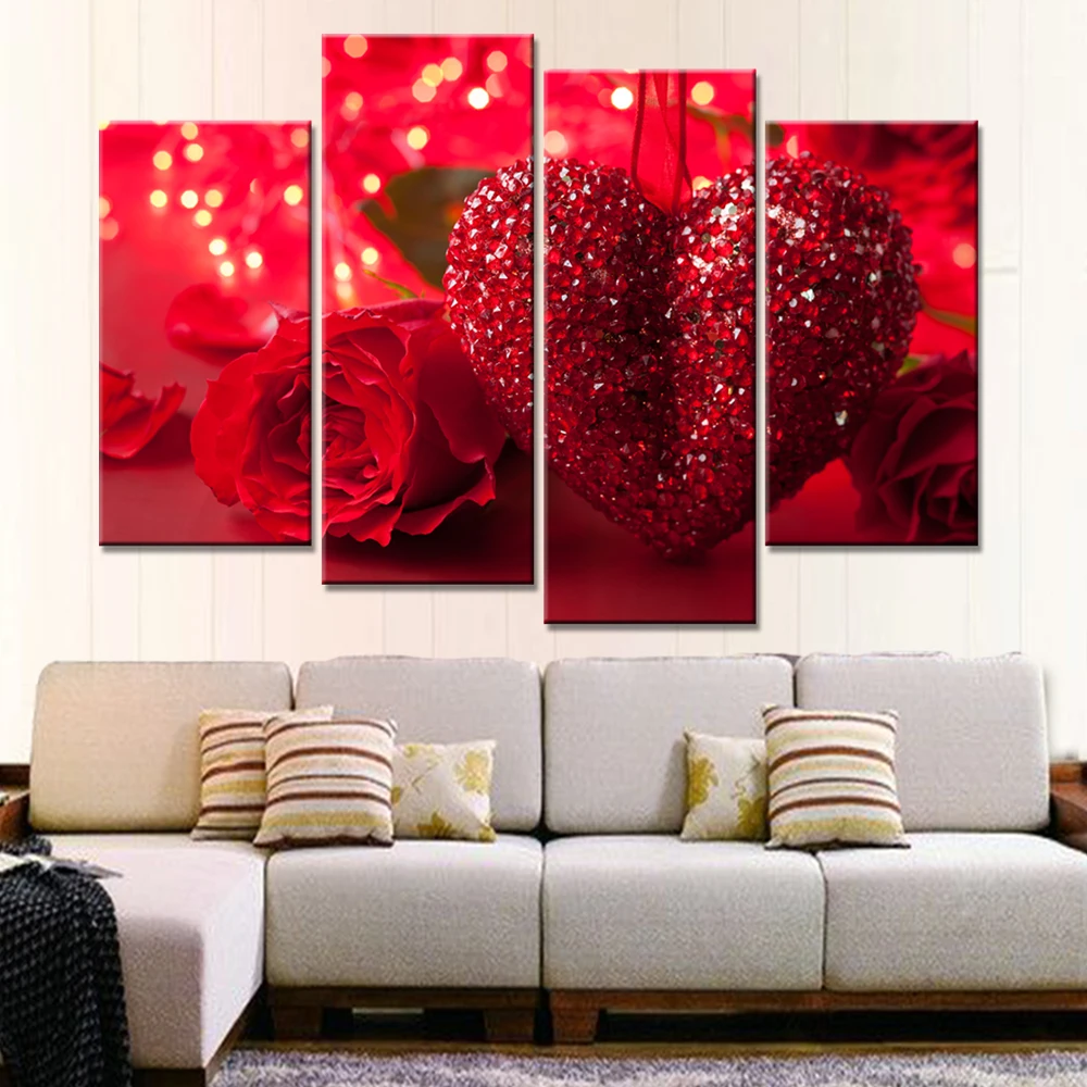 Us 9 74 40 Off Modular Lukisan Kanvas Wall Art Gambar Dekorasi Rumah 5 Pieces Bunga Mawar Merah Hati Penuh Kasih Modern Hd Cetak Poster Kerangka In