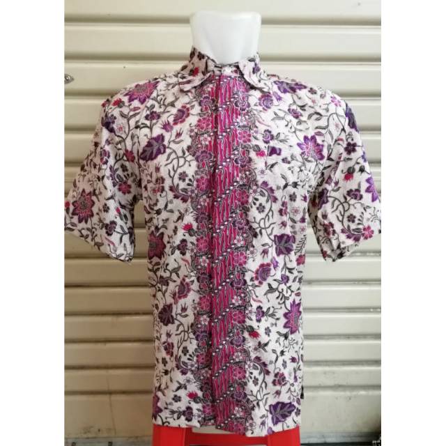 Kemeja Batik Pendek Motif Bunga Tanjung Pink