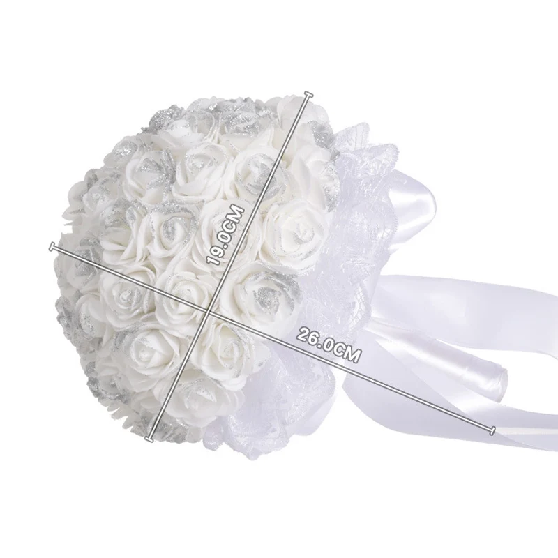 Buatan Plastik Putih Rose Hand Bouquet Pengantin Dengan Pita