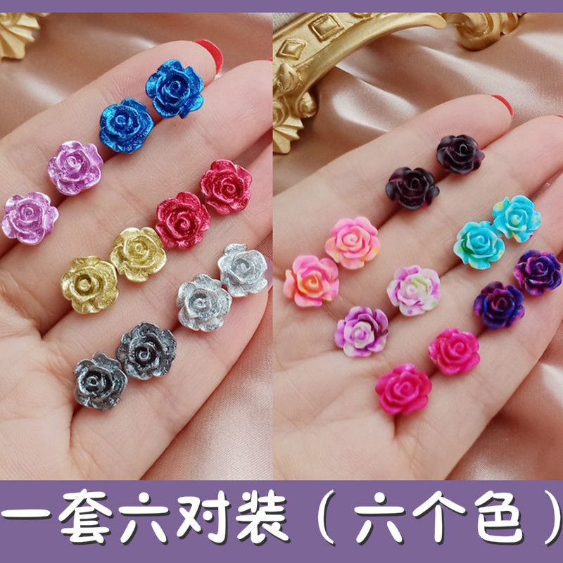 6 Pasang Anting Tusuk Model Kelopak Bunga Mawar Simple Mini Warna Gradasi Untuk Wanita