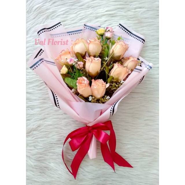 Jual Buket Bunga Bunga Mawar Peach Bunga Buket Wisuda Jakarta Barat Freshcut Flower Tokopedia