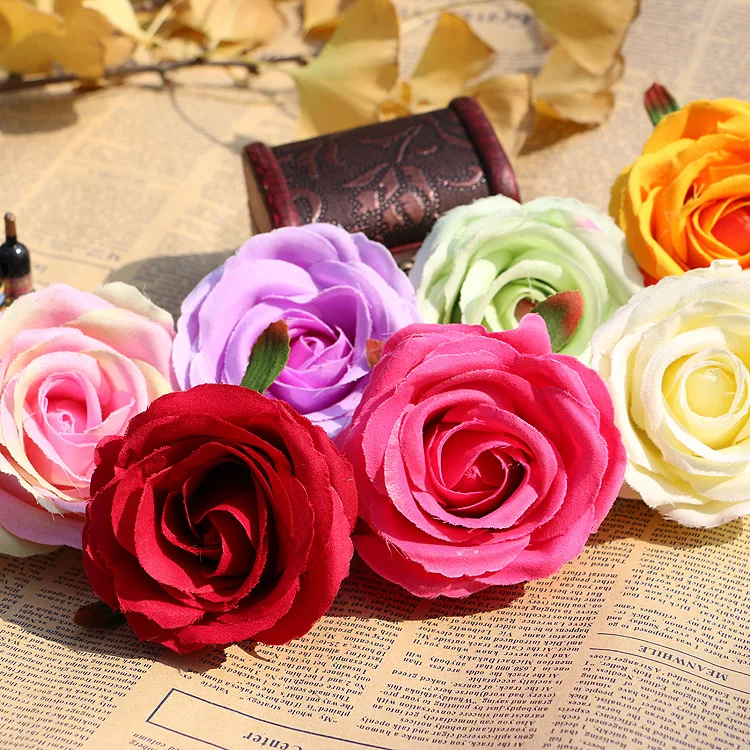100 Pcs Warna Warni Bunga Mawar Kepala Sutra Bunga Toko Mawar High End Simulasi Besar Buket Mawar Bunga 2