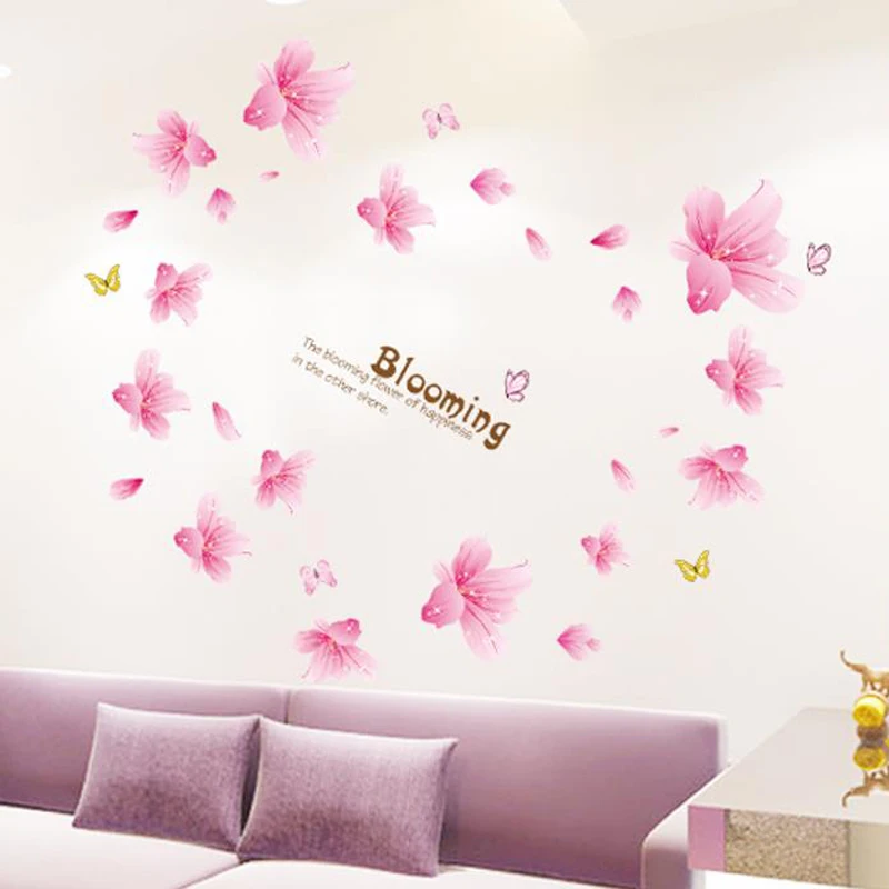 Us 4 73 5 Off Merah Muda Bunga Lily Stiker Dinding Besar Untuk Tv Latar Belakang Ruang Tamu Decals Dekorasi Dinding Gambar Mural Art Home Dekorasi