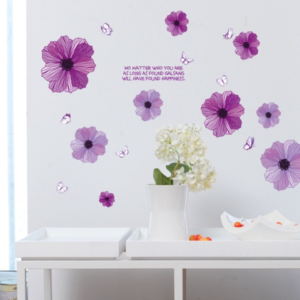 Bunga Bunga Ungu Romantis Dekorasi Kamar Wallpaper Dinding