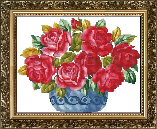 Us 8 5 Top Kualitas Lucu Indah Terhitung Cross Stitch Kit Red Rose Bouquet Vas Bunga Bunga Mawar Wiehler Gobelin 3671 3 In Paket From Rumah Taman