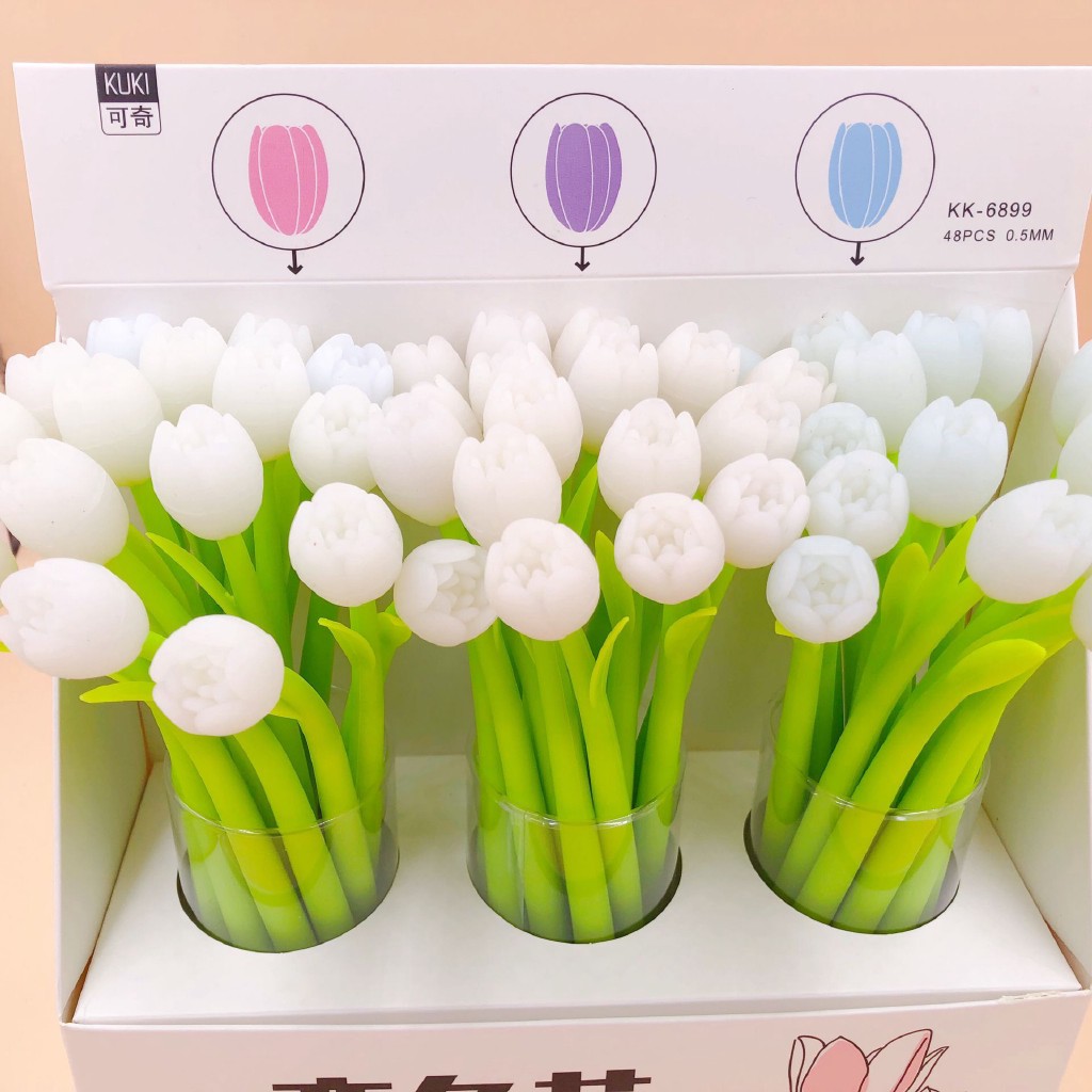 1pc Pulpen Gel Motif Bunga Tulip Warna Warni Ganti
