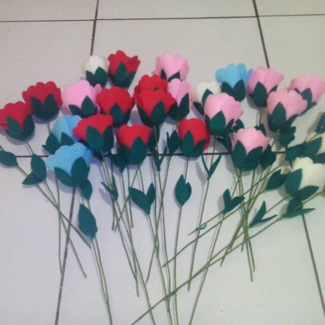 Contoh Kerajinan Tangan Bunga Dari Kain Flanel Merah Putih