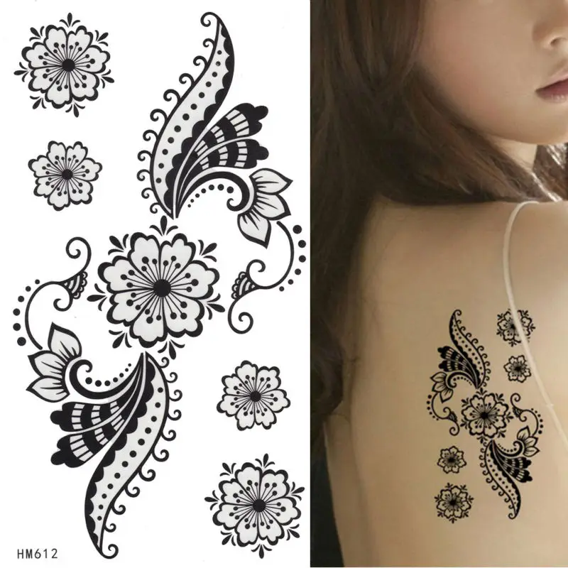 King Horse Cool Black Henna Flower Tattoo Waterproof 17x10cm