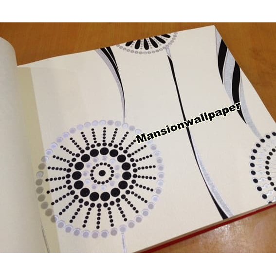 Wallpaper Dinding Bunga Lingkaran Modern Hitam Putih