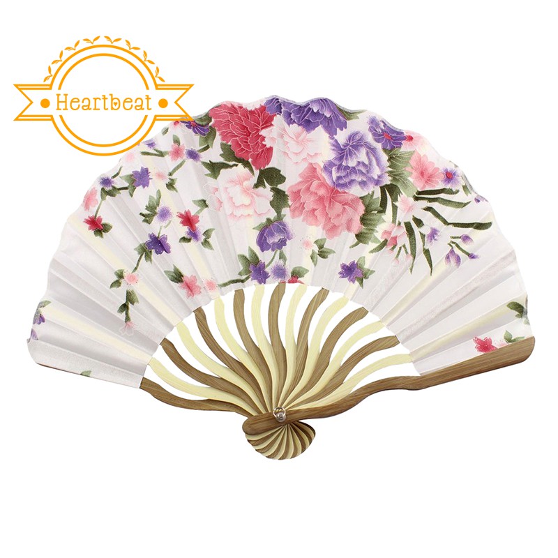 Retro Jepang Folding Sutra Kipas Tangan Bunga Bambu Pesta