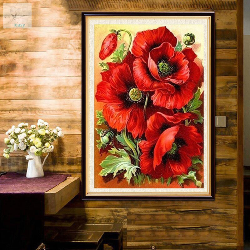 Diy Lukisan Diamond 5d Dengan Gambar Bunga Mawar Merah Dan Hiasan Berlian Buatan